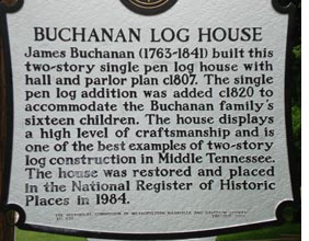 James Buchanan, an early settler in Davidson County, married Lucinda East in 1810. The first log addition to the home was necessitated in 1820, to accommodate their growing family, which eventually numbered 16 children. The next addition to the house occurred in 1900.