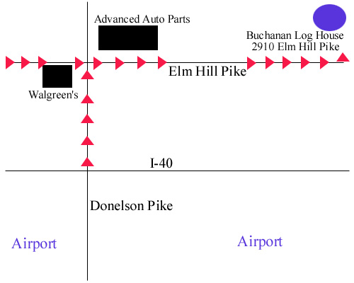 Coming from Nashville using I-40: Take I-40 East to the Donelson Pike North Exit which is the next exit after the Airport Exit. After exiting, Elm Hill Pike is the third traffic light. Landmarks on the corners are Walgreen's, Arby's, and Advance Auto Parts. At this intersection, you will turn right on Elm Hill Pike and travel to us at 2910 which will be on your left approximately 1/2 mile from the intersection.